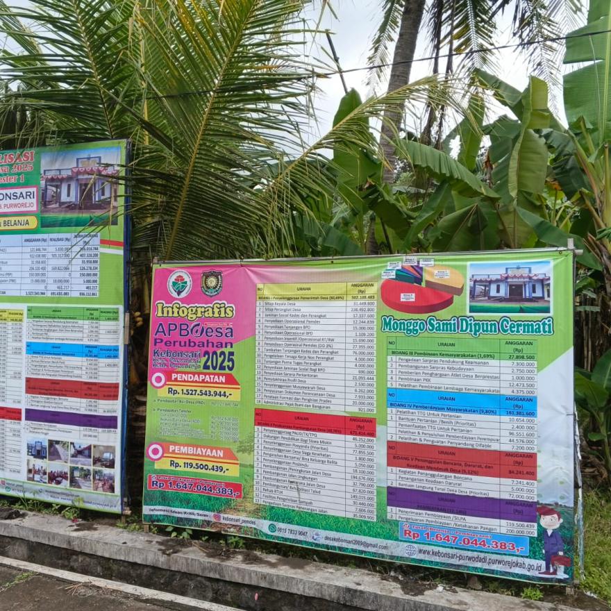 Dalam pemaparan Laporan Realisasi Anggaran semester 1 APBDes 2025 secara langsung,transparan dan terbukan yang kami paparkan langsung di baliho di depan Kantor Desa Kebonsari selain itu masyarakat juga dapat mengakses di web resmi milik Desa di :